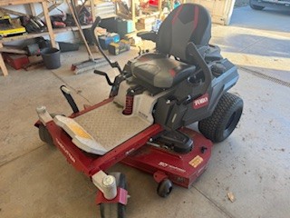 Toro Time Cutter riding lawn mower, 50” cut, commercial V-Twin 24.5 hp engine, MyRide suspension system; Toro Recycler self propelled mower, 22” cut, elec start, 6.5 hp engine; Yard Works 2X20V Li-Ion electric push mower, 18” cut; EGO cordless leaf blower; Power Pro gas string trimmer; Black & Decker cordless string trimmer; Ranch King 32” lawn sweep; push & pull type lawn seeders; lawn thatcher, lawn aerator, Schumacher batter charger/booster; shop bench; 2 Suncrest hose reels; garden hoses & sprinklers; Stanley booster pack; Milwaukee, Bosh, Dewalt & SKIL power & cordless tools; socket & wrench sets; bench grinder; hand saws; rolling tool cabinet; hammers; pliers; channel locks; small vice; misc hand tools; ratchet straps; wheel barrow; floor jack; 30’ of iron deck railing, plus much more