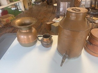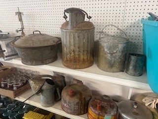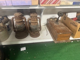 THIS IS A GREAT CONSIGNMENT OF ANTIQUES & COLLECTIBLES INCLUDING: KELLOG TELEPHONE, CREAM CANS, BARN LANTERNS, ALLADIN LAMPS, ANTIQUE TOYS & GAMS, 1/16 SCALE TRACTORS, VINTAGE CAR PARTS, CAST IRON ITEMS, CAST IRON CALDRON, COPPER BOILER, SPITOON, EGG BASKETS, PRIMITIVE TOOLS, BLUE JARS, SAUSAGE STUFFER, WINE PRESS, ICE SHACK, FISHING SUPPLIES, BEER MEMORABILIA, WATTS BOWLS, REDWING POTTERY, ADVERTISING PIECES PLUS MUCH MORE